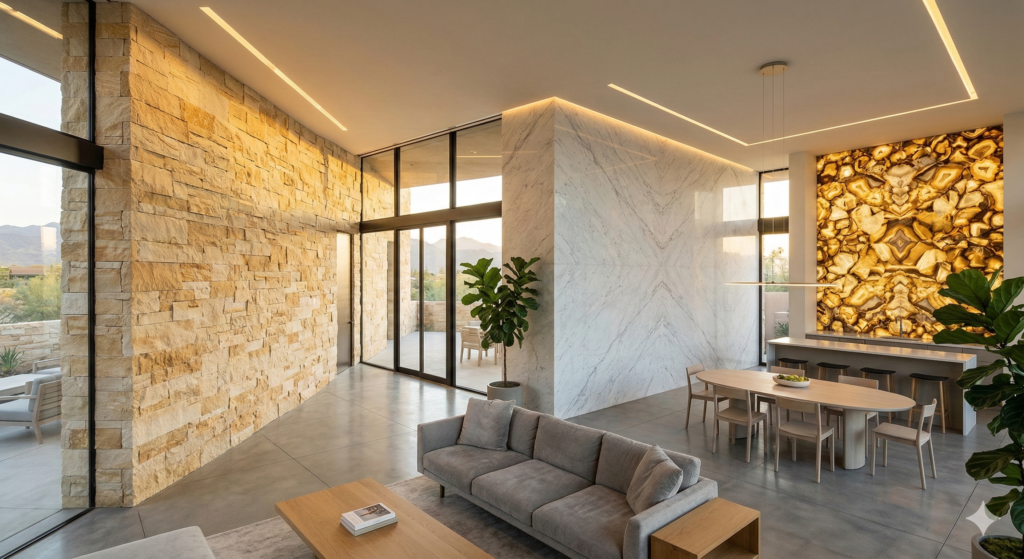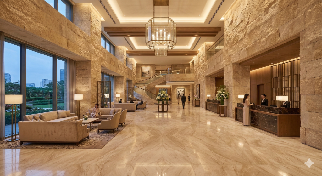 Stone surfaces elevate residential architecture with elegance and lasting durability.Natural stone creates striking environments in hotel lobbies, reception areas, and hospitality spaces.After Saga | Marble, Granite, Quartz & Stone Materials