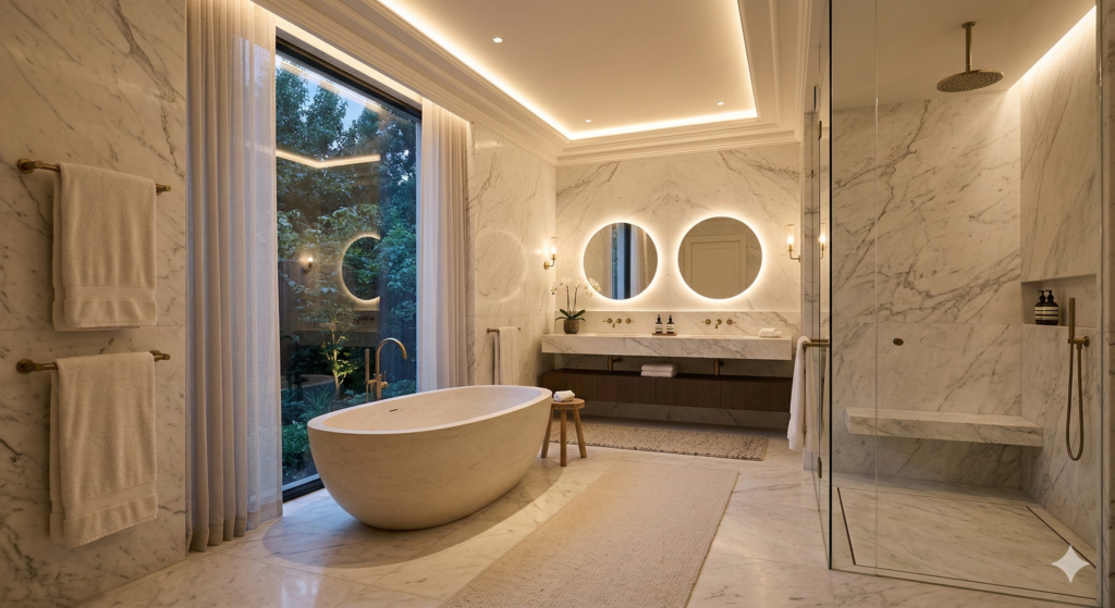 Marble and natural stone bring sophistication and durability to modern bathrooms.Natural stone flooring offers strength, beauty, and timeless appeal for both interiors and exteriors.Stone surfaces enhance landscapes, courtyards, and exterior architectural elements.